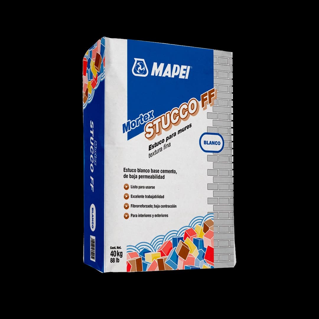 ESTUCO MAPEI MORTEX STUCCO FF PARA MUROS TEXTURA FINA COLOR BLANCO 40KG