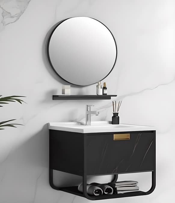 Lavabo de cerámica con placa de porcelanato